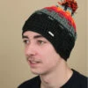 De forme légèrement allongée, ce bonnet couronné d’un pompon de fourrure est confectionné dans une matière très douce par la marque Barts, avec un effet de zigzags verticaux original. La base grise foncée est ponctuée de fils plus clairs, pour un rendu moucheté.