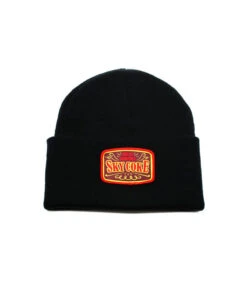 Protégez-vous du froid cet hiver en portant ce bonnet à pompon bleu marine avec des rayures, jaune et noir et un gros pompon. Cet accessoire éco-responsable contient des matériaux recyclés.