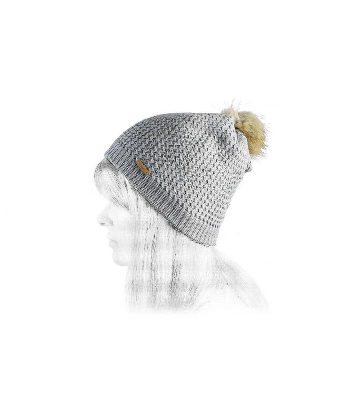 En gris chiné lumineux, ce ravissant bonnet vous donnera une allure très féminine, grâce à ses incrustations scintillantes. Bien chaud puisque sa matière très douce contient 50 % de laine, il est couronné d’un superbe pompon en fausse fourrure très légère.