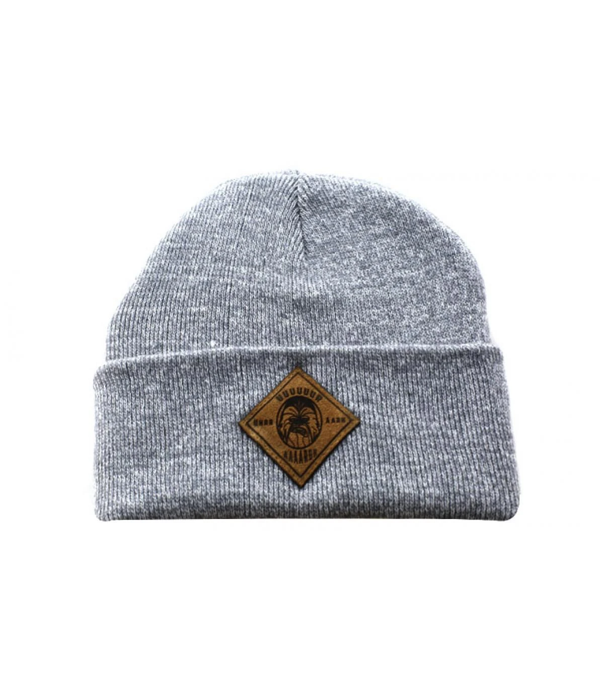 Patch gravé fun sur bonnet revers gris.