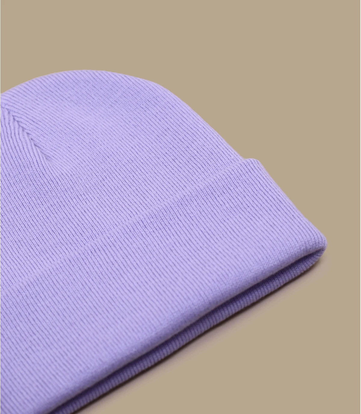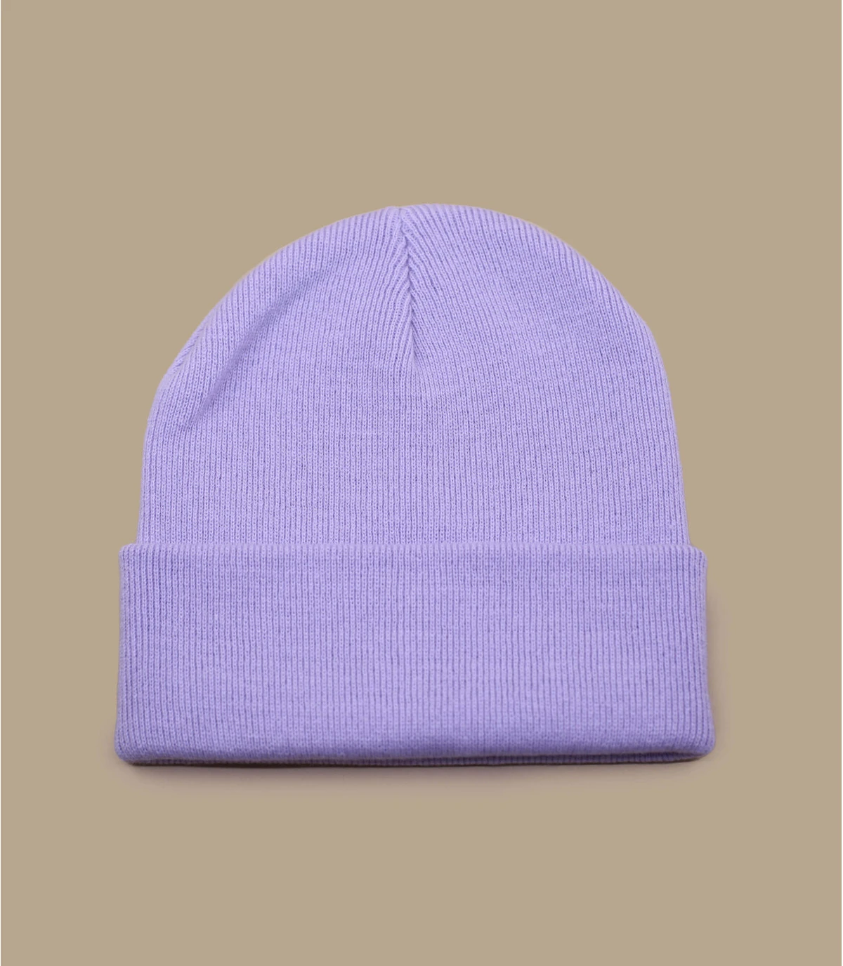 Bonnet Ă revers violet pastel. 100% acrylique.