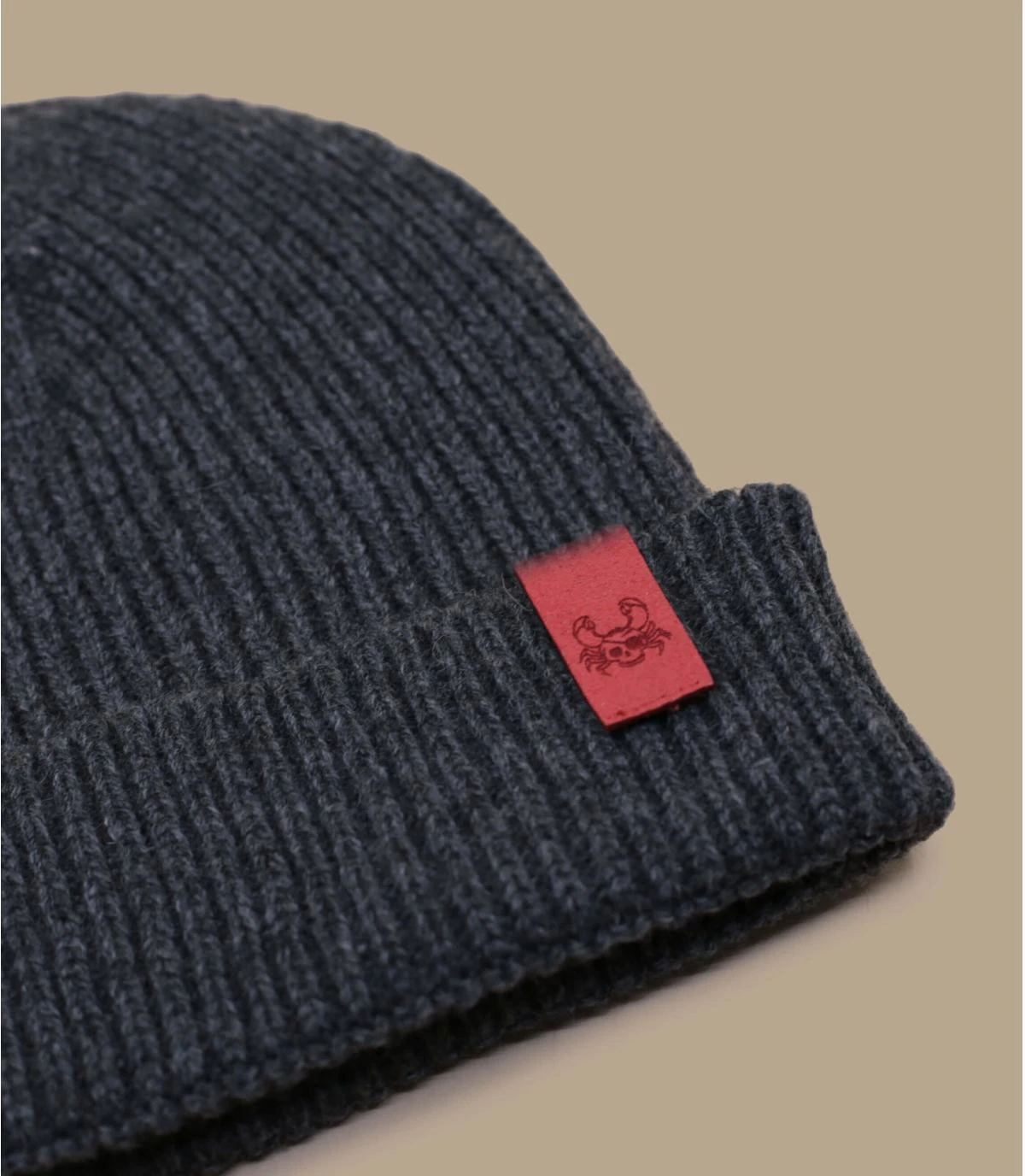 Bonnet en laine fabriquĂ© en France dans la rĂ©gion Rhone Alpes et personnalisĂ© dans notre Atelier d’Annecy, Ă partir de matières recyclĂ©es. Crabe pirate gravĂ© sur patch rouge.