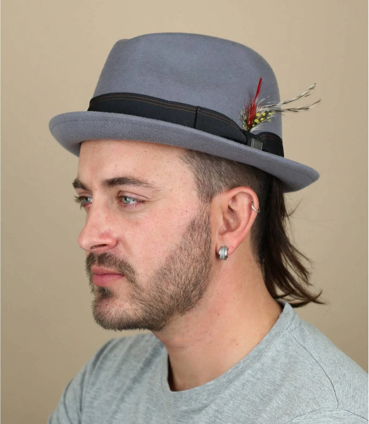 Avec la qualitĂ© et le soin apportĂ© aux dĂ©tails qui caractĂ©risent Brixton, ce joli pork pie en feutre gris est parfait pour complĂ©ter vos tenues hivernales dâune touche Ă©lĂ©gante.