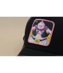 Personnage aux multiples facettes, Boo apparait dans sa version gentille en taille XXL sur le patch carré de cette superbe casquette trucker noire, qui plaira aux fans de la saga DBZ. Elle est complétée de son emblème sur le côté.