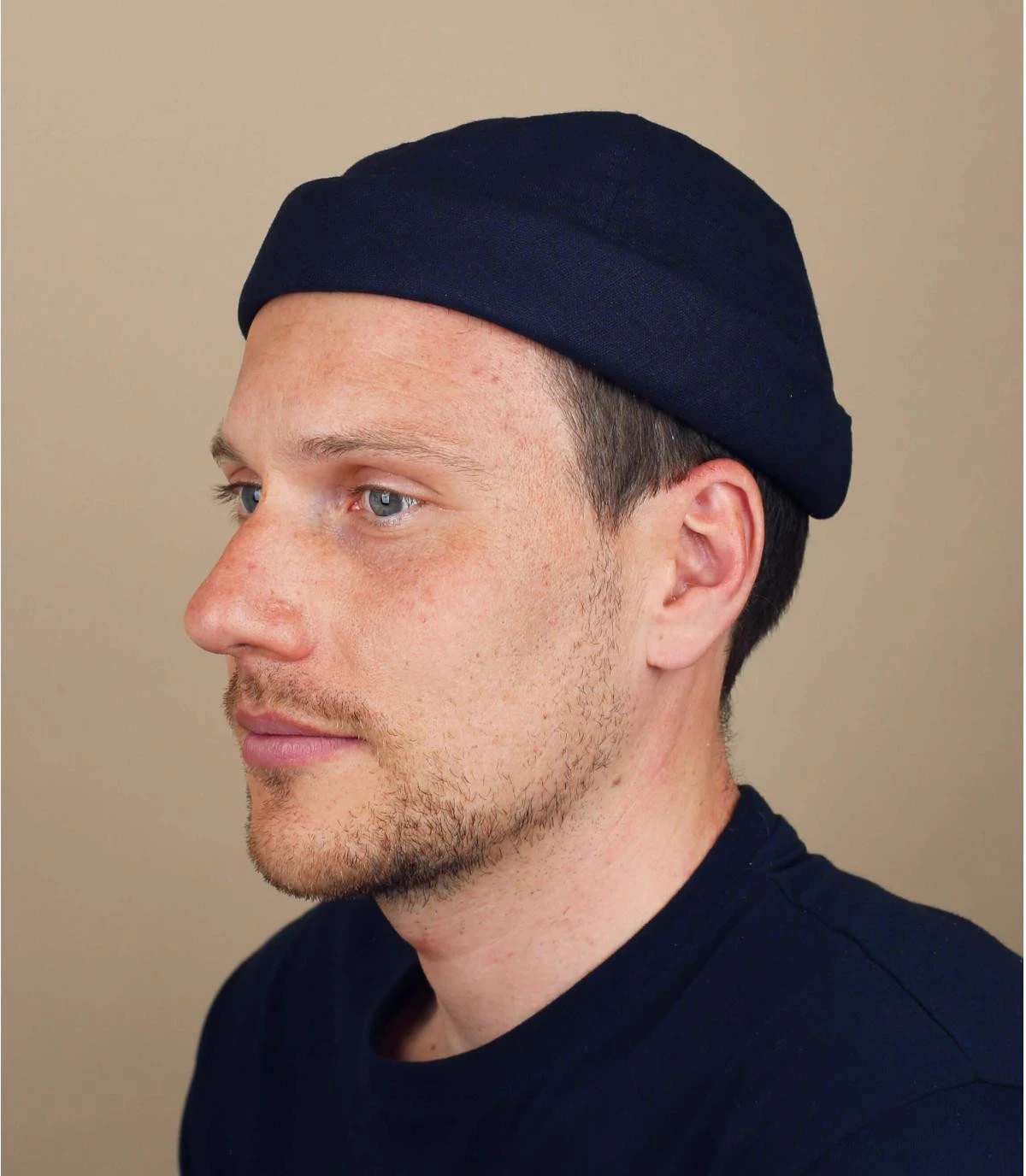 Adoptez le style nautique moderne, avec ce bonnet docker bleu marine composĂ© de lin rĂ©sistant, frais et lĂ©ger. TrĂšs agrĂ©able Ă porter, il sâajuste au dos grĂące Ă une bande de tissu assortie avec une fermeture velcro.