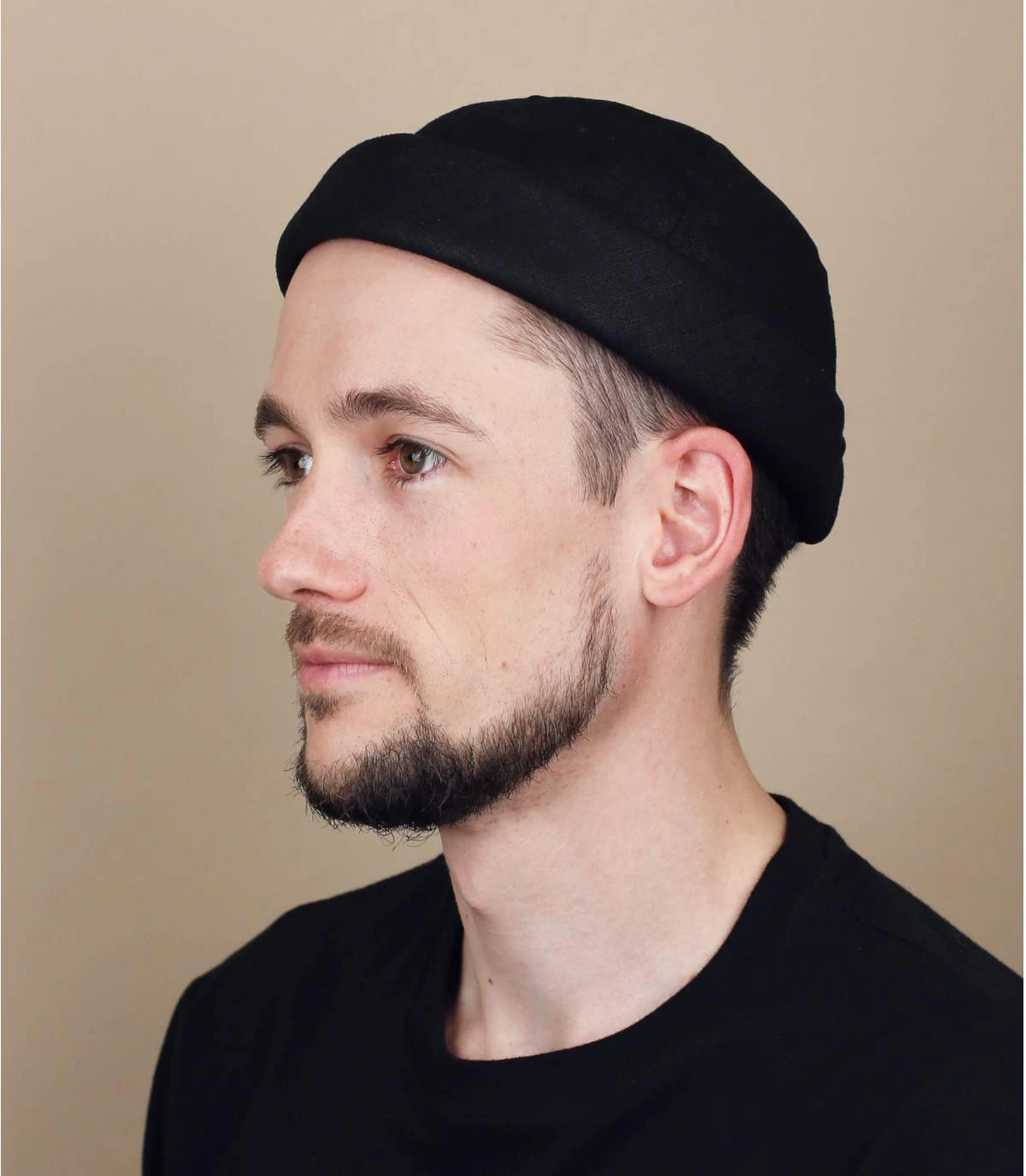 Donnez du chien Ă vos tenues, avec ce bonnet docker noirâ! Original, ce modĂšle trĂšs rock’n roll est composĂ© de lin frais et confortable pour se porter commodĂ©ment mĂȘme par temps chaud. Il sâajuste au dos par un velcro discret.