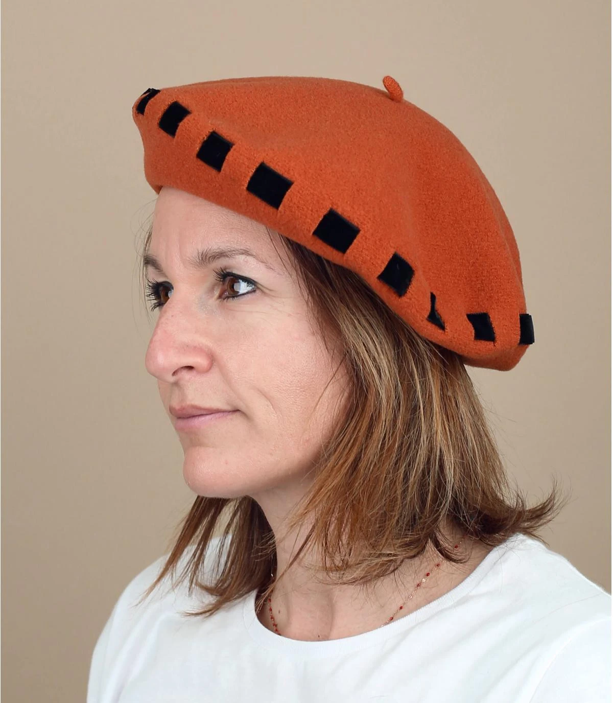 Si vous souhaitez obtenir une allure aussi originale qu’élégante, adoptez ce magnifique béret en laine mérinos de la marque Laulhère, affichant une ravissante teinte orangée qui réchauffera vos froides journées. Il est relevé d’un charmant ruban de velours noué.