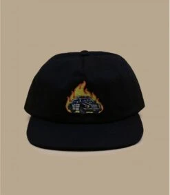 Cette casquette snapback noire de la marque de skate californienne Huf ne laisse personne indiffĂ©rent, avec son patch sur l’avant reprĂ©sentant une voiture de police en flammes. Ne jouez pas avec le feu…