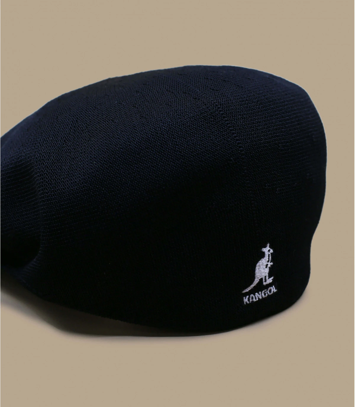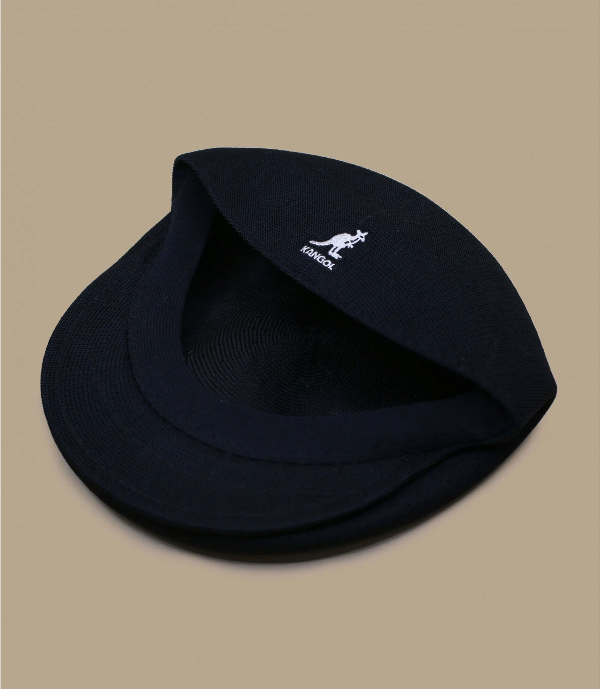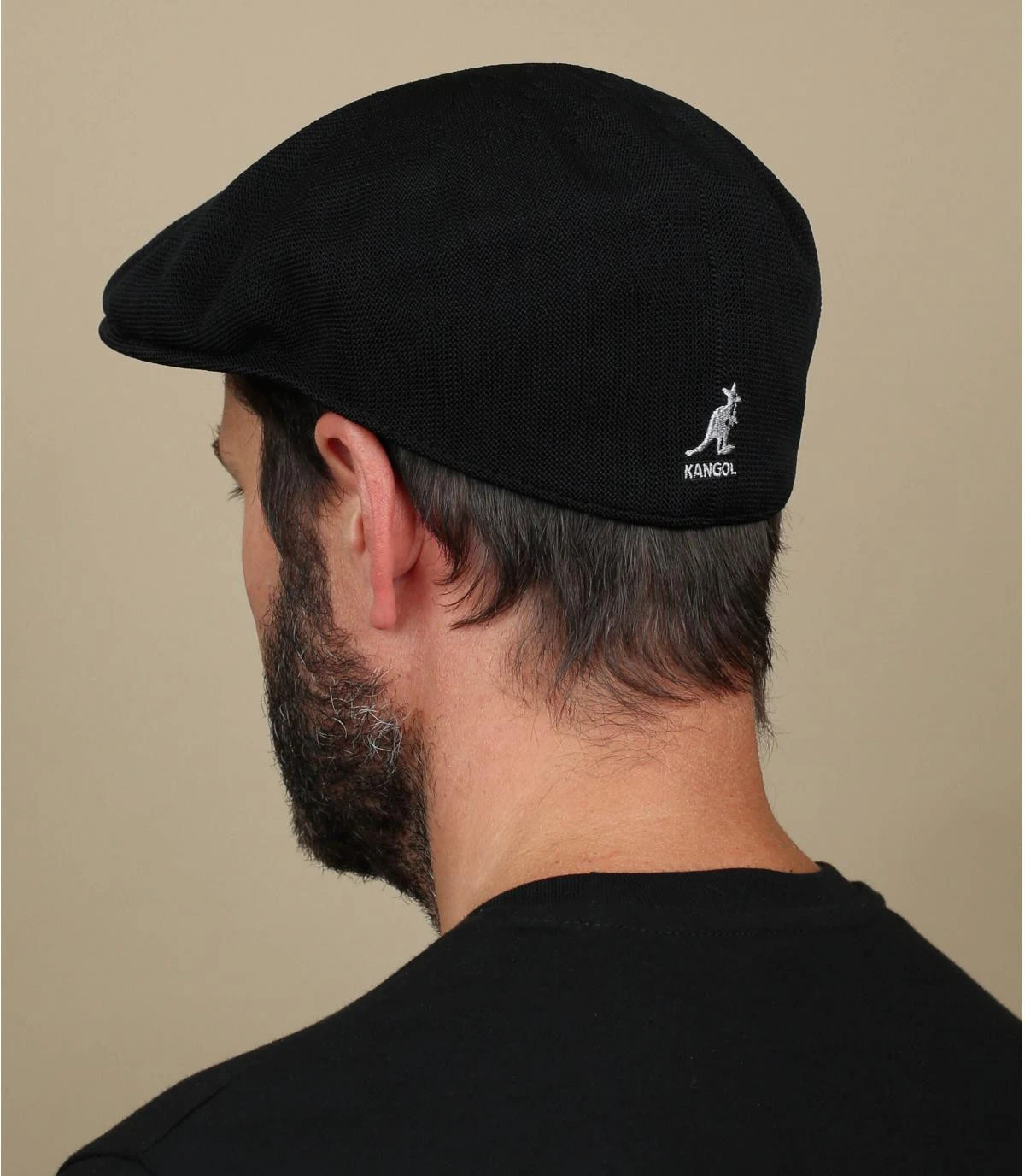 BĂ©ret casquette noir avec visiĂšre. Logo Kangol cousu Ă l’arriĂšre. Bande antisueur 100% nylon.