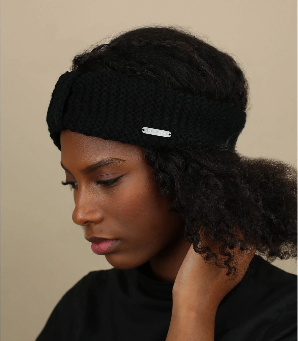 Craquez pour ce charmant bandeau en tricot noir relevé d’un passant qui lui donne une forme rétro élégante. Réalisé dans une matière très douce, il est intégralement doublé en polaire pour vous tenir bien chaud.