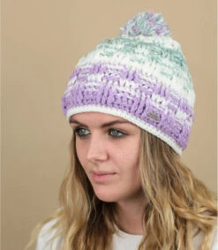 La marque Capcho s’inspire de la culture nĂ©palaise avec des couleurs vibrantes. Ce modèle Ă pompon violet et gris tricotĂ© Ă la main est chaud et confortable. Il est tendance Ă la ville comme en pleine nature.