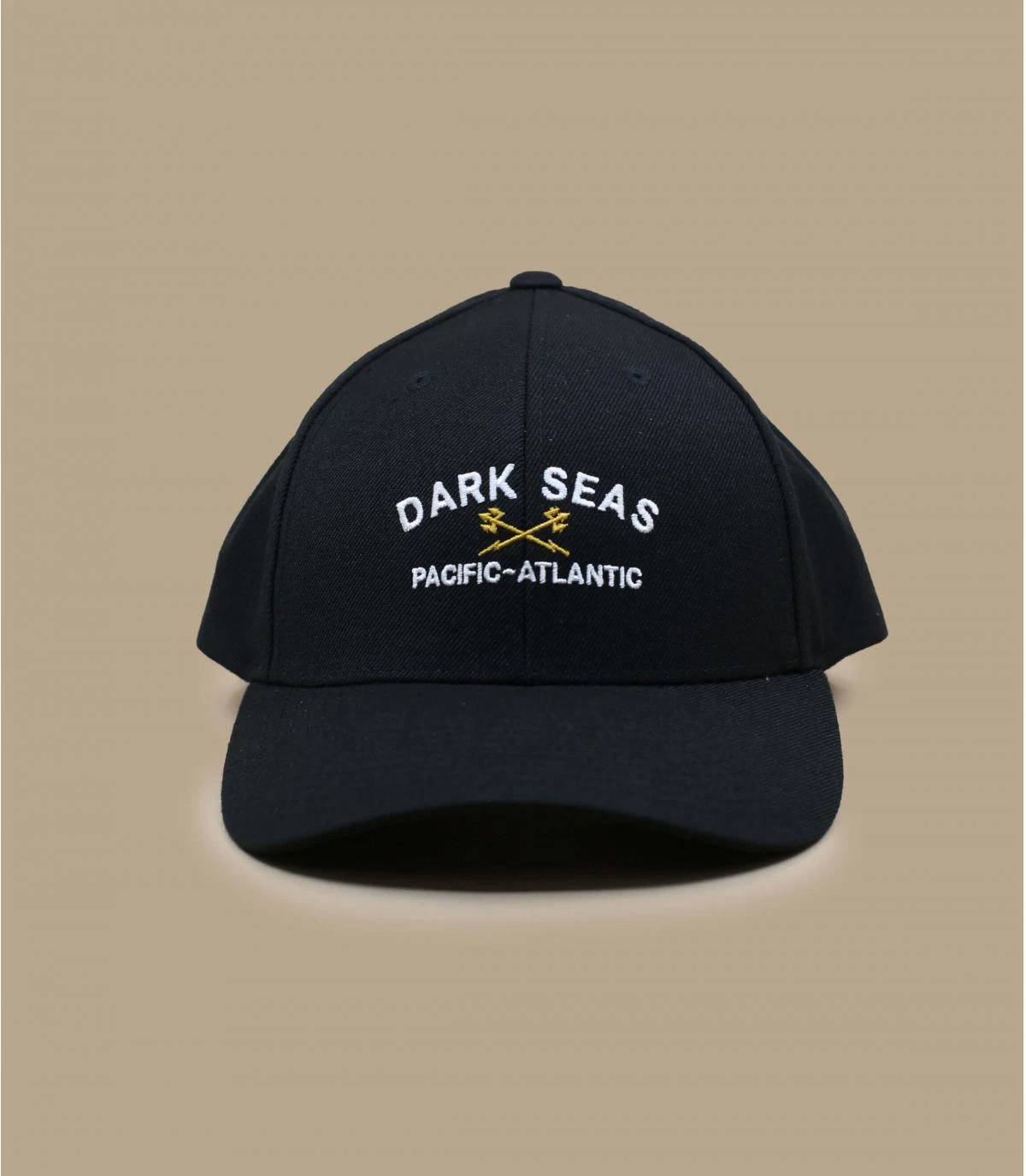 « Venture past the shore line », aventure-toi plus loin que la plage, c’est la devise de Dark Seas, la marque de surf californienne avec une touche sombre, inspirée de son fondateur le pro skateur Adrian Lopez. Cette belle casquette noire à visière courbée est brodée de deux tridents croisés devant.