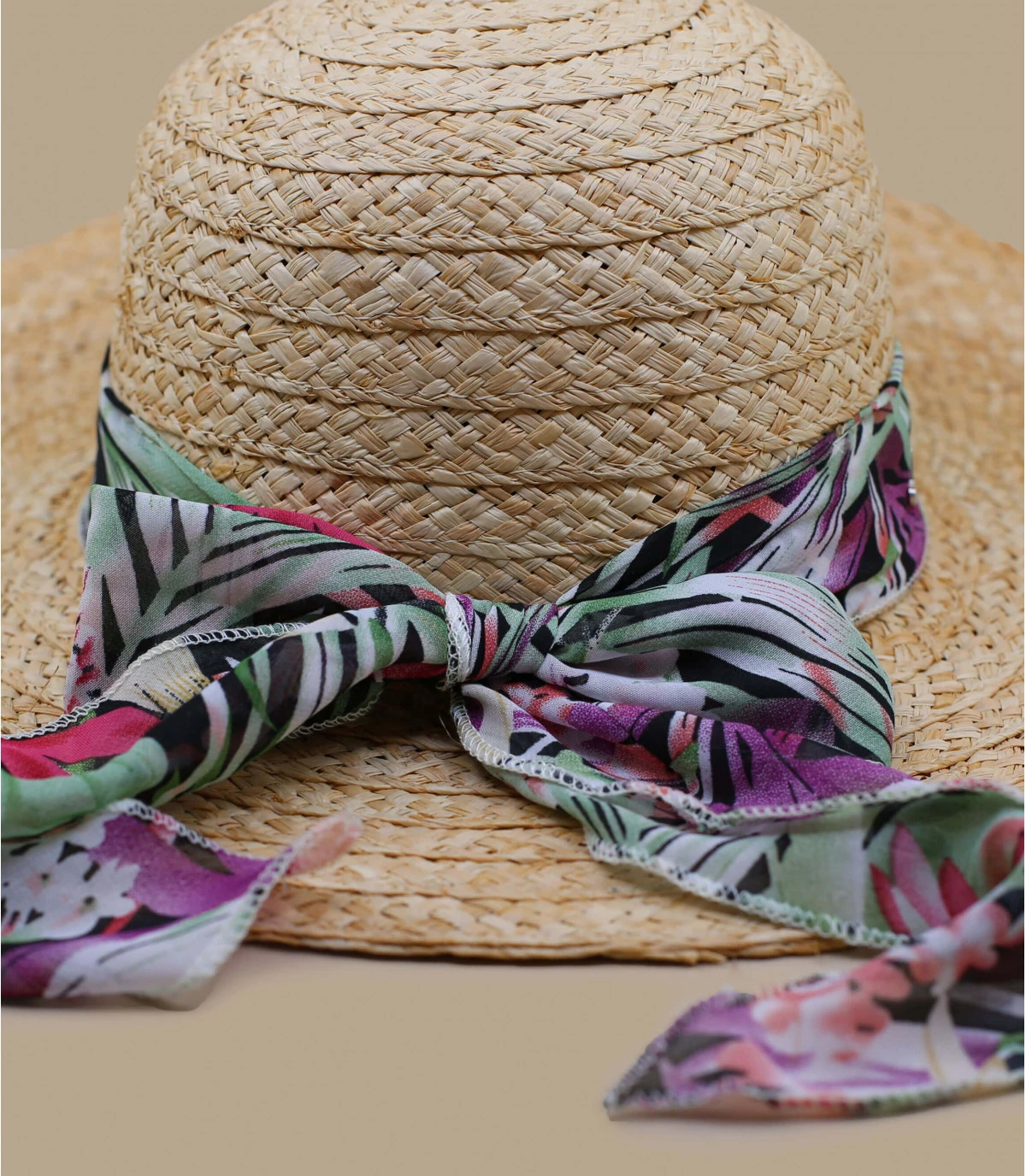 Vous incarnerez la classe de Audrey Hepburn cet été avec ce chapeau 100 % paille de raphia ! Son bord large protège du soleil. Il est décoré d’un ruban avec un imprimé exotique dont le nœud qui porte le nom de la marque.