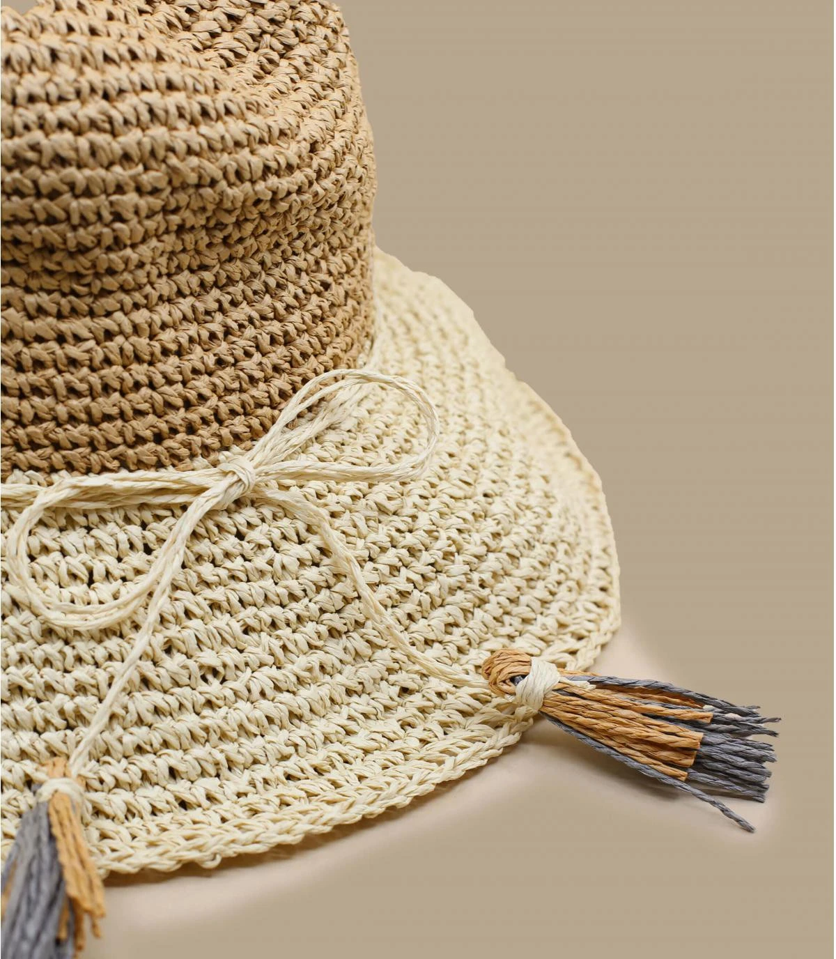 Faites des envieuses à la plage cet été, avec votre magnifique capeline de paille peinte en blanc et bleu, qui donnera une allure très graphique à vos tenues estivales. Souple et respirante, elle est relevée d’un lien tressé blanc.