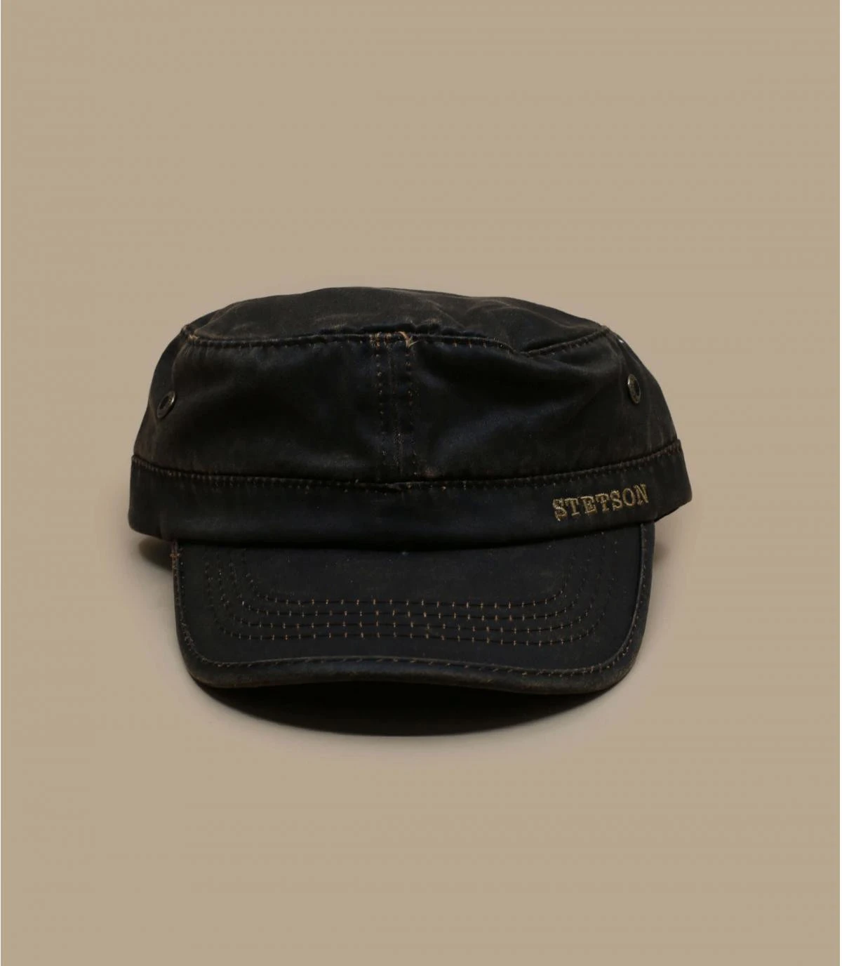 Casquette army marron de la marque US Stetson. Ćillets mĂ©tal, broderie Stetson Ă l’avant.