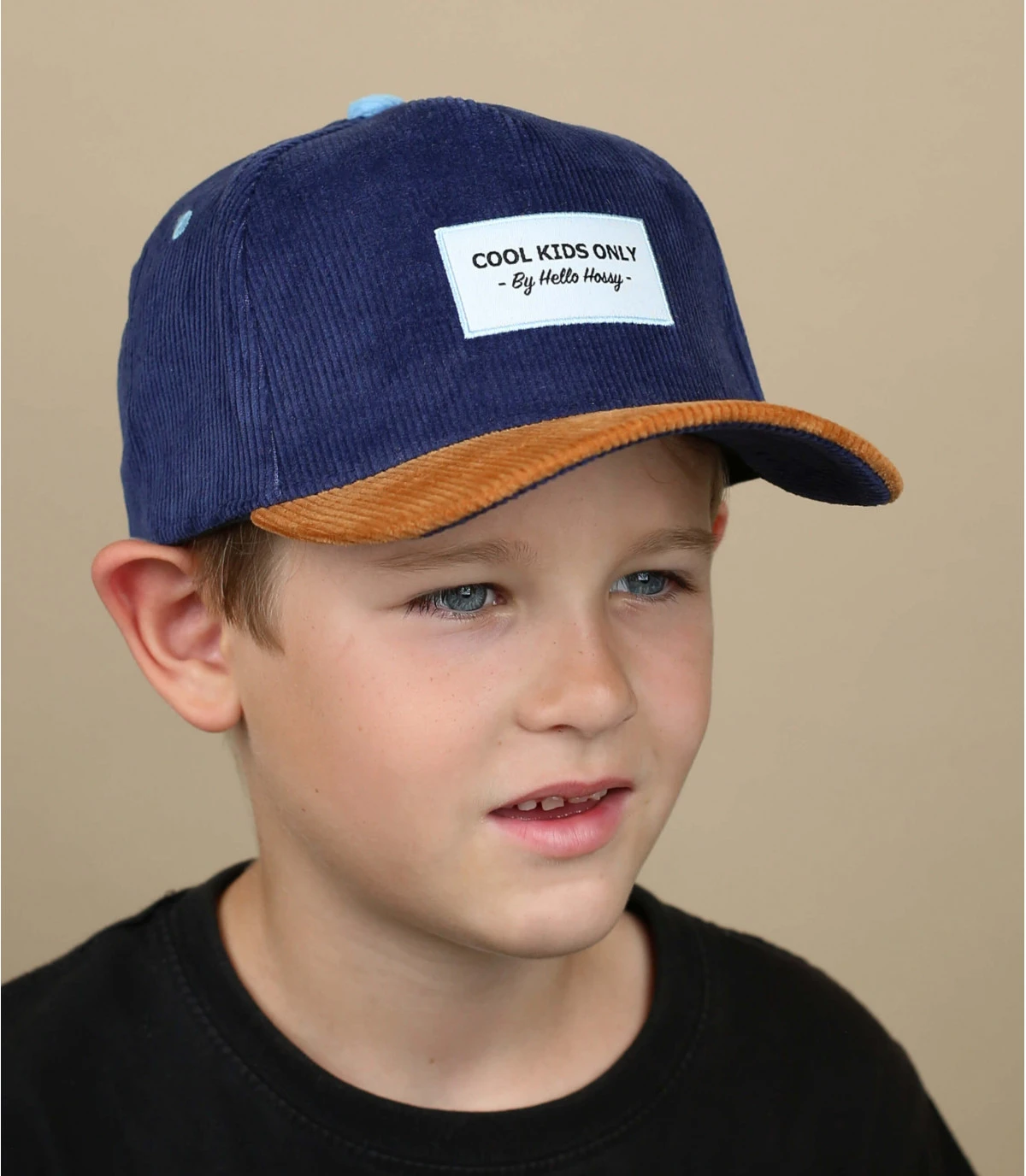 Impossible de résister à cette ravissante casquette enfant bleu indigo, complétée d’une visière courbée beige et d’un patch Cool Kids Only.